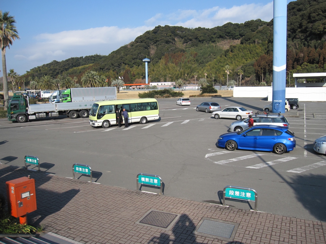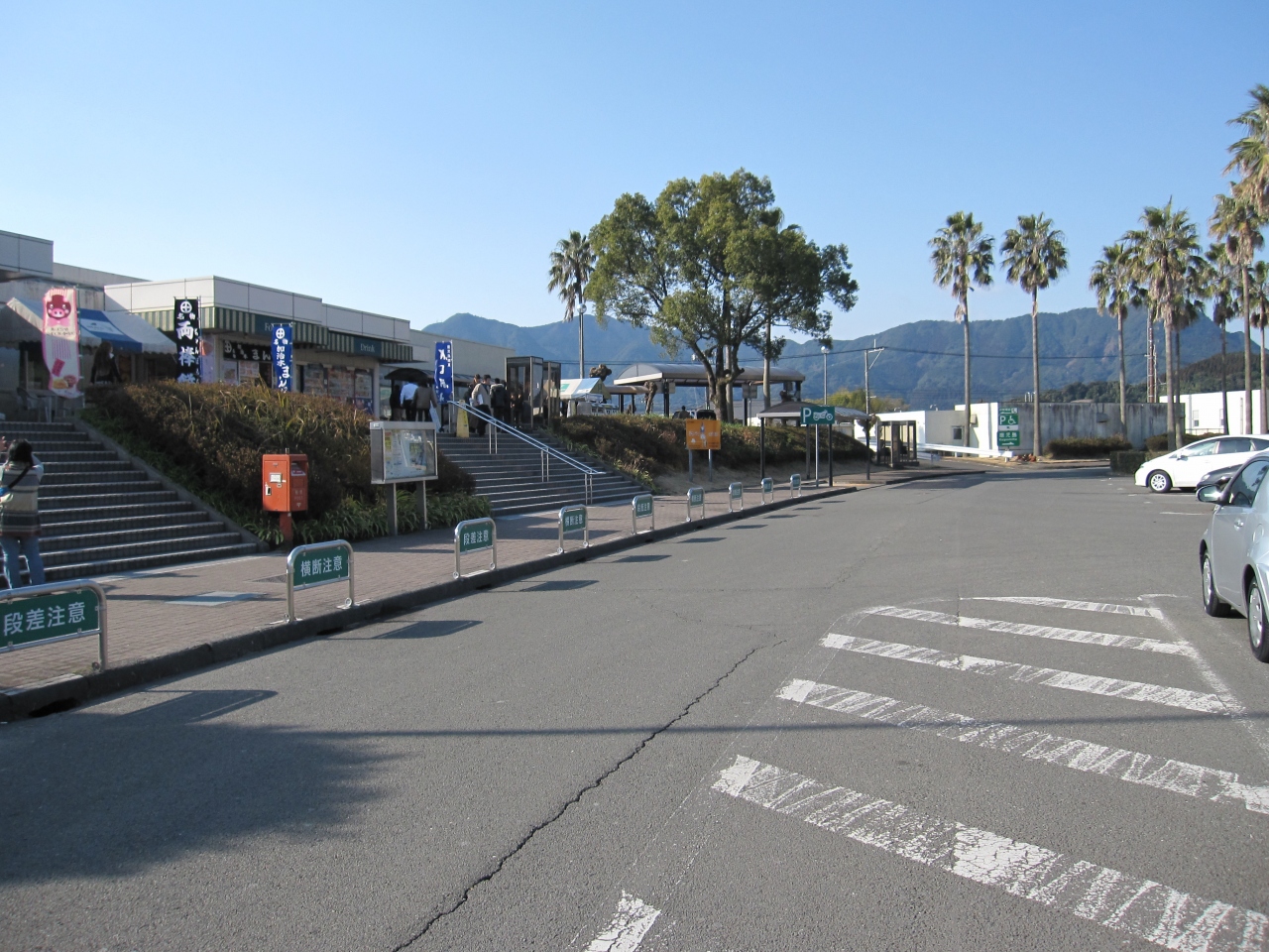 鹿児島空港から鹿児島市内に向かう際に立ち寄るには便利な場所にあります。もっとも鹿児島空港が出てすぐに高速道路に入ることが出来ますので、休むには未だ早いかも知れませんが、桜島が大きく見え、施設内にはヤシの木が点在して南国情緒にあふれています。桜島SA手前の加治木JCT脇には映画「未知との遭遇」に出てくるデビルスタワーのような加治木のシンボル蔵王岳が印象的です。何故か山頂には日の丸が上がっています。
