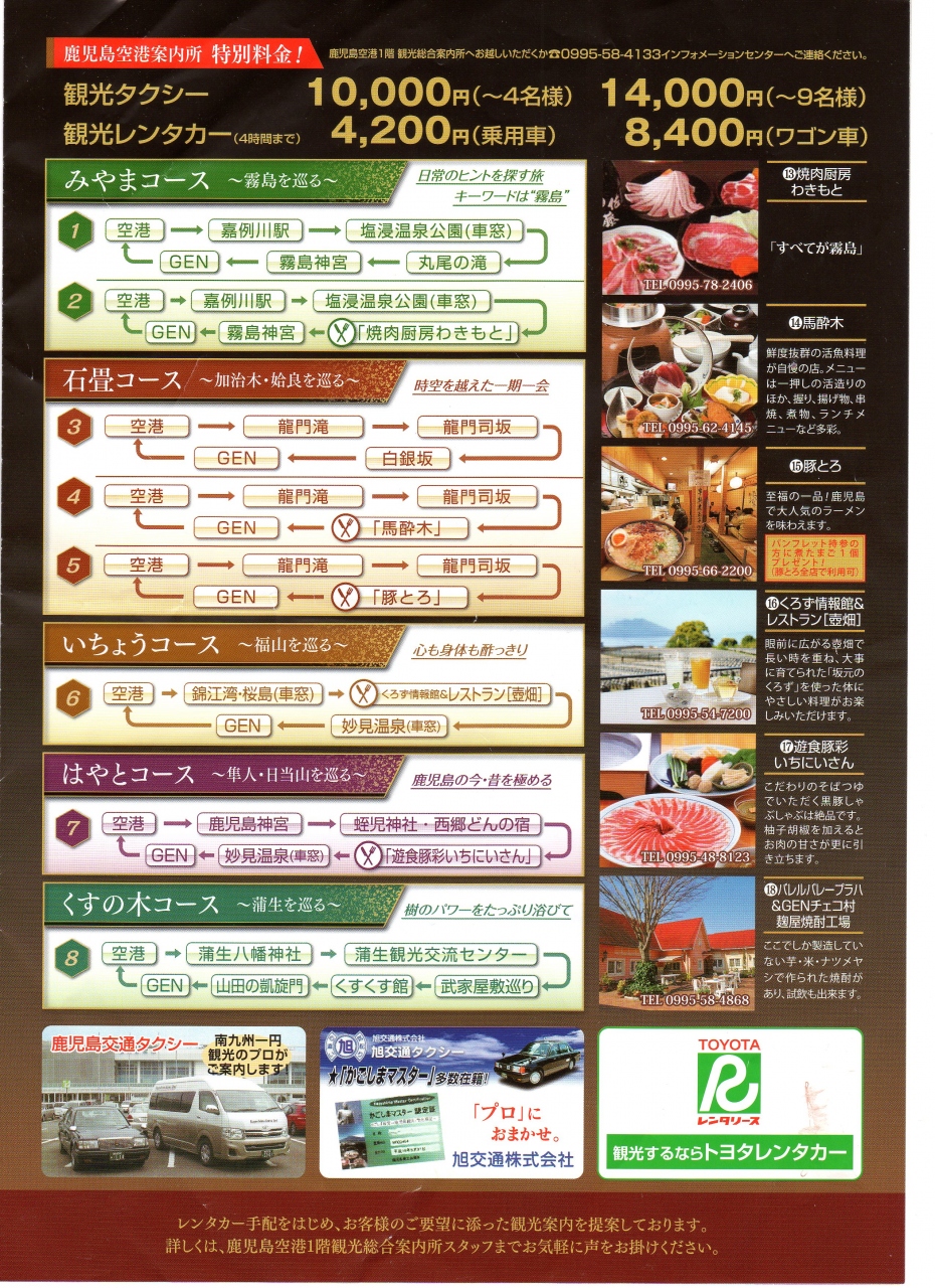 鹿児島空港の観光案内所でもらった空港周辺観光案内がとても役立ちます