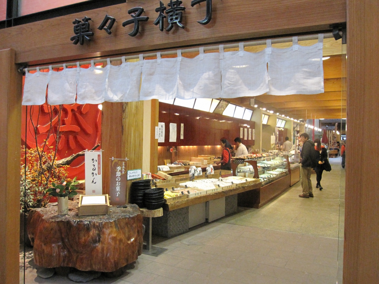 鹿児島市内の繁華街。その中心、天文館大通りアーケード内にあります。1階は店舗で2階は甘味処の茶房「珈花子」と屋根裏ギャラリーがあります。鹿児島土産なら薩摩蒸気屋「かるかん」がイチオシです。駅や空港でも売っていますが、ここ菓々子横丁は茶房やギャラリーがあって落ちけます。旅の締めくくりにはもってこいです。