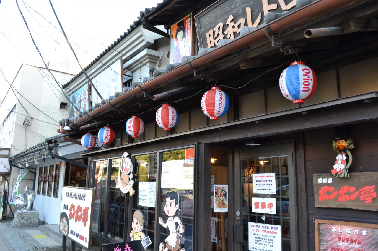 青梅赤塚不二夫会館と隣同士で、青梅駅近くの青梅街道に面していて、昭和レトロ観光の中心地です。博物館の入口にある青梅宿ぼんぼん亭のスープ餃子は有名で、赤塚不二夫先生もお気に入りだったそうです。お値段はランチタイムメニューで何と500円です。なかなか食べでがあって、ボリュームばかりではなくとても美味しく満足度が高いです。