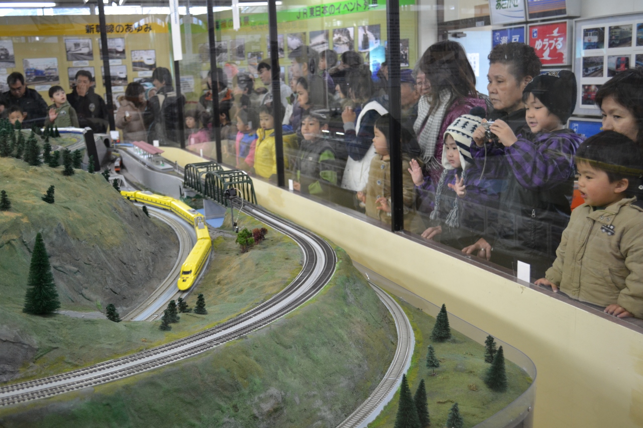 - 記念館にある鉄道模型の運転会は子供たちに人気です。