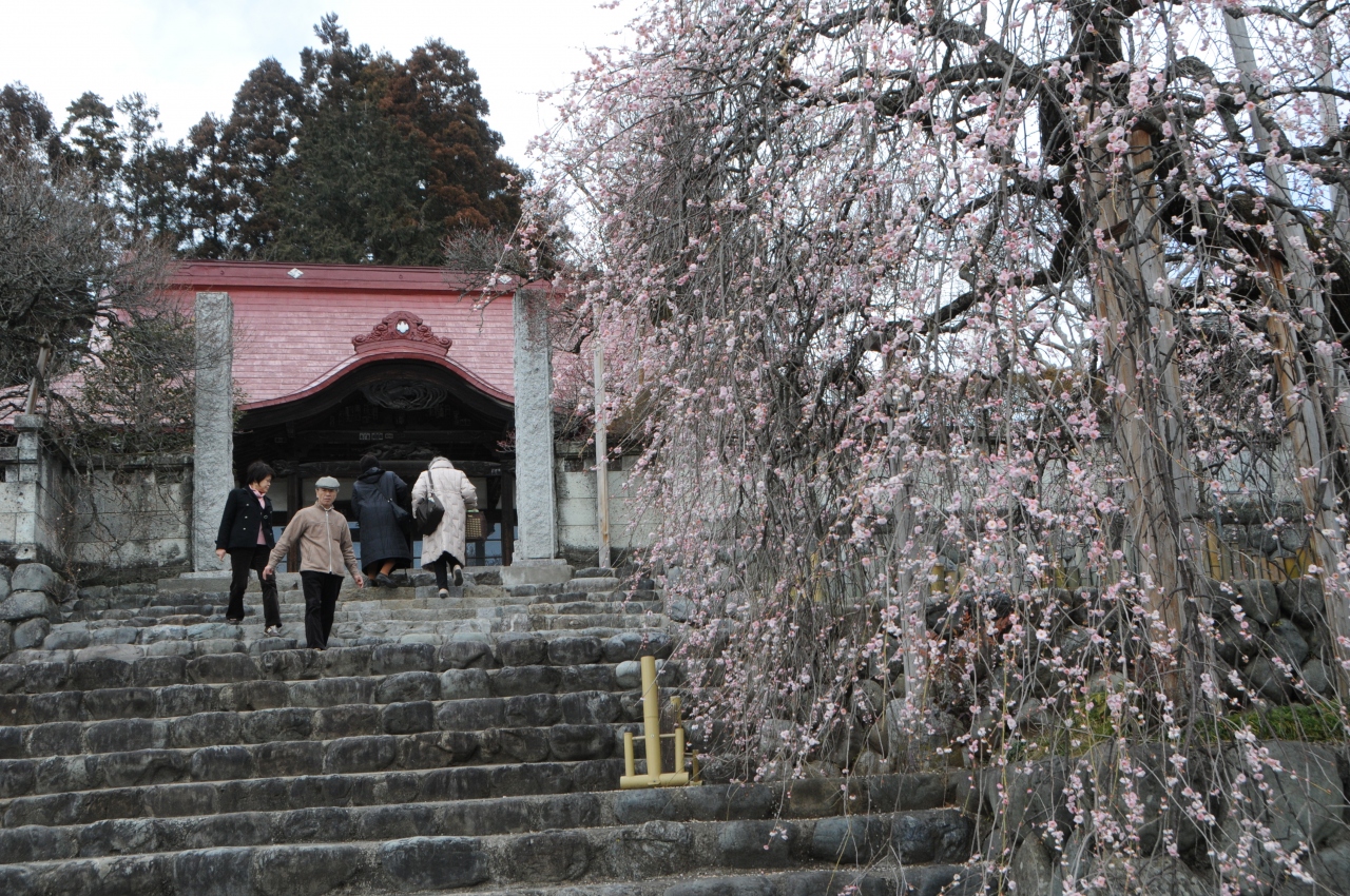 青梅七福神のひとつ福禄寿を祀る明白院が駅前を通る青梅街道を奥多摩方向に少し歩くとあります。山門脇には青梅市の古木と指定された「しだれ梅」(玉垣しだれ)があります。ここは青梅マラソン大会の10キロコースの折返し地点にもなっています。