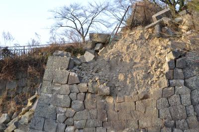 崩れた城壁に大震災の被害の大きさに驚き、復興を願うばかりです