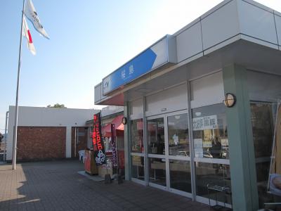 山間の小さな駅で、駅前の雑貨店がいい味を出しています。