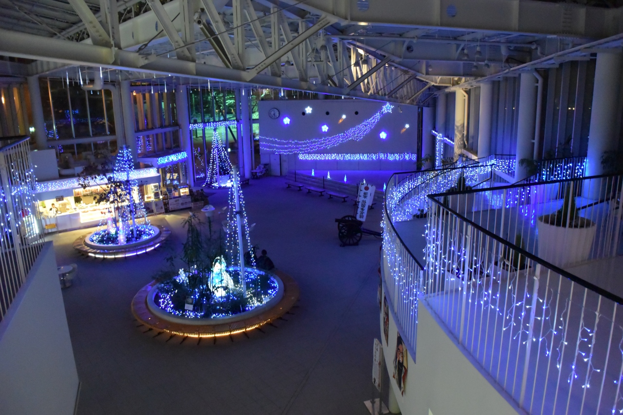 エレベーターで行く展望室の寒くない環境で冬のイルミネーションが堪能できます。結露防止のためでしょうか、室温は少し低めです。
