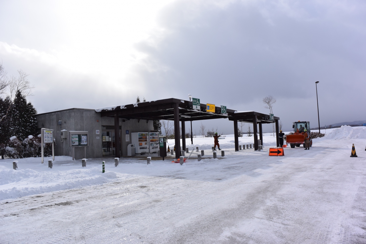 国道5号線をニセコ、倶知安など山間部を抜けて黒松内ICから道央自動車道に入って最初のパーキングエリアです。本州のように割と頻繁にパーキングエリアやサービスエリアがあるわけでもなく、次の八雲パーキングエリアまで40キロ以上無いうえに八雲パーキングエリアも売店などはありません。なので何も無いとはいえ静狩パーキングエリアは貴重な休憩場所だと思います。冬場は雪の行路が続き神経を使う道なので休憩を適宜とるのはとても必要です。