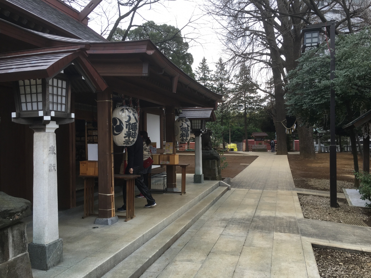 小田急線の各駅停車だけが止まる世田谷代田駅から環七道路方向に5分ほど坂を下ったところにあります。大型車両が行きかう環七通り沿いにある鎮守さまで創建は1500年代ということで歴史は500年以上あります。