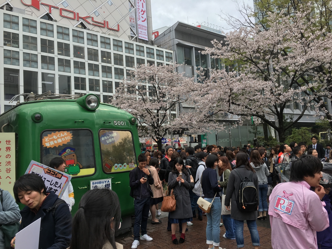 ハチ公像の周りには桜の木があって淡いピンクがとてもきれいでした。- 旅行時期