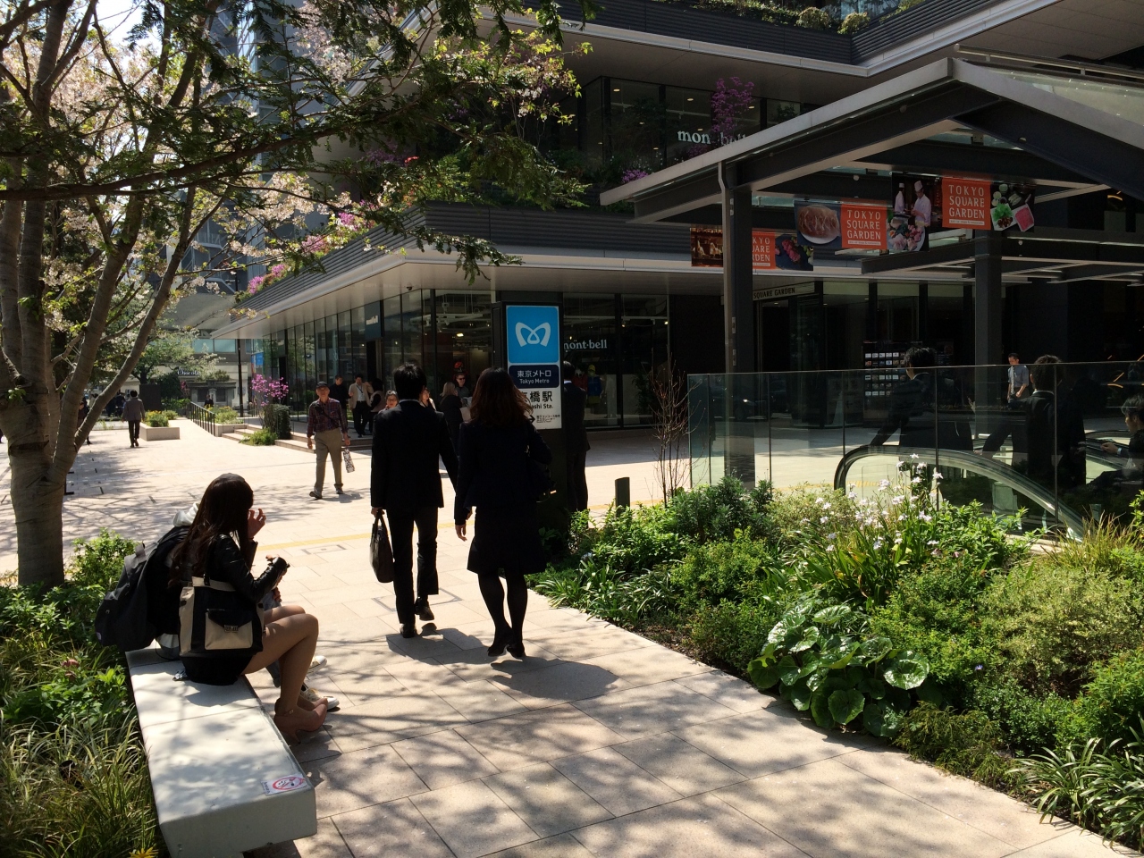 鍛冶橋通りと中央通りの交差点にあり、地下階で東京メトロ銀座線で直結しています。1階に登山用具などアウトドアショップのモンベルの店舗があります。東京駅周辺は大丸の中に石井スポーツがあり高島屋の近くには地図のぶよう堂があって、登山ハイキング用品のショップには事欠きません。モンベル周囲はきれいな緑化がなされています。