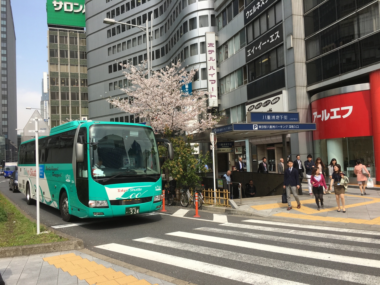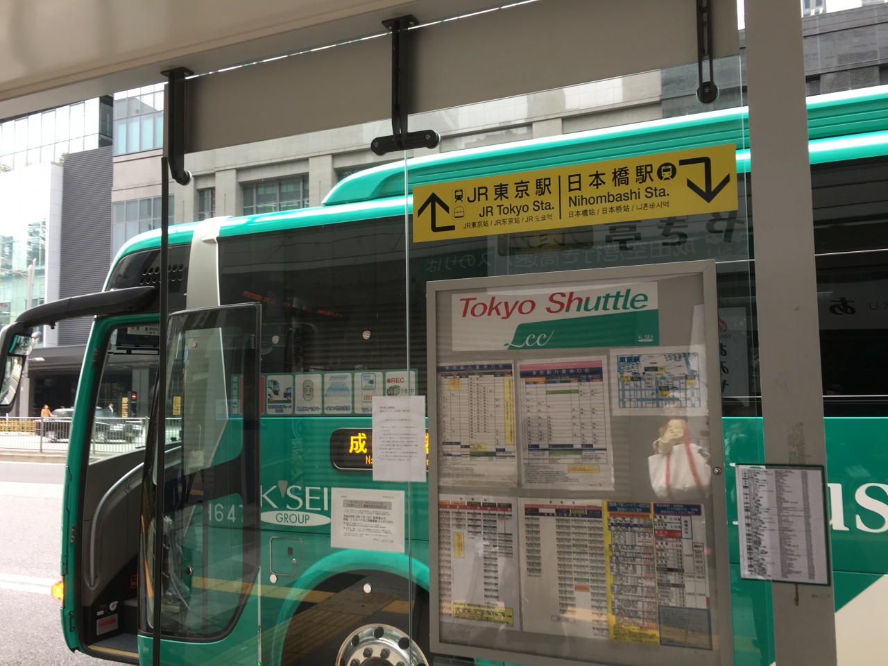 東京駅八重洲北口(大丸がある側)から外堀通りを渡った向かい側、ヤマダ電機のすぐ近くにバス停はあります。競合するアクセス成田が八重洲南口のグランルーフ屋根下から出るのに比べると多少、バス停までのアクセスにはハンデがありますが、日本橋や三越前には近いです。