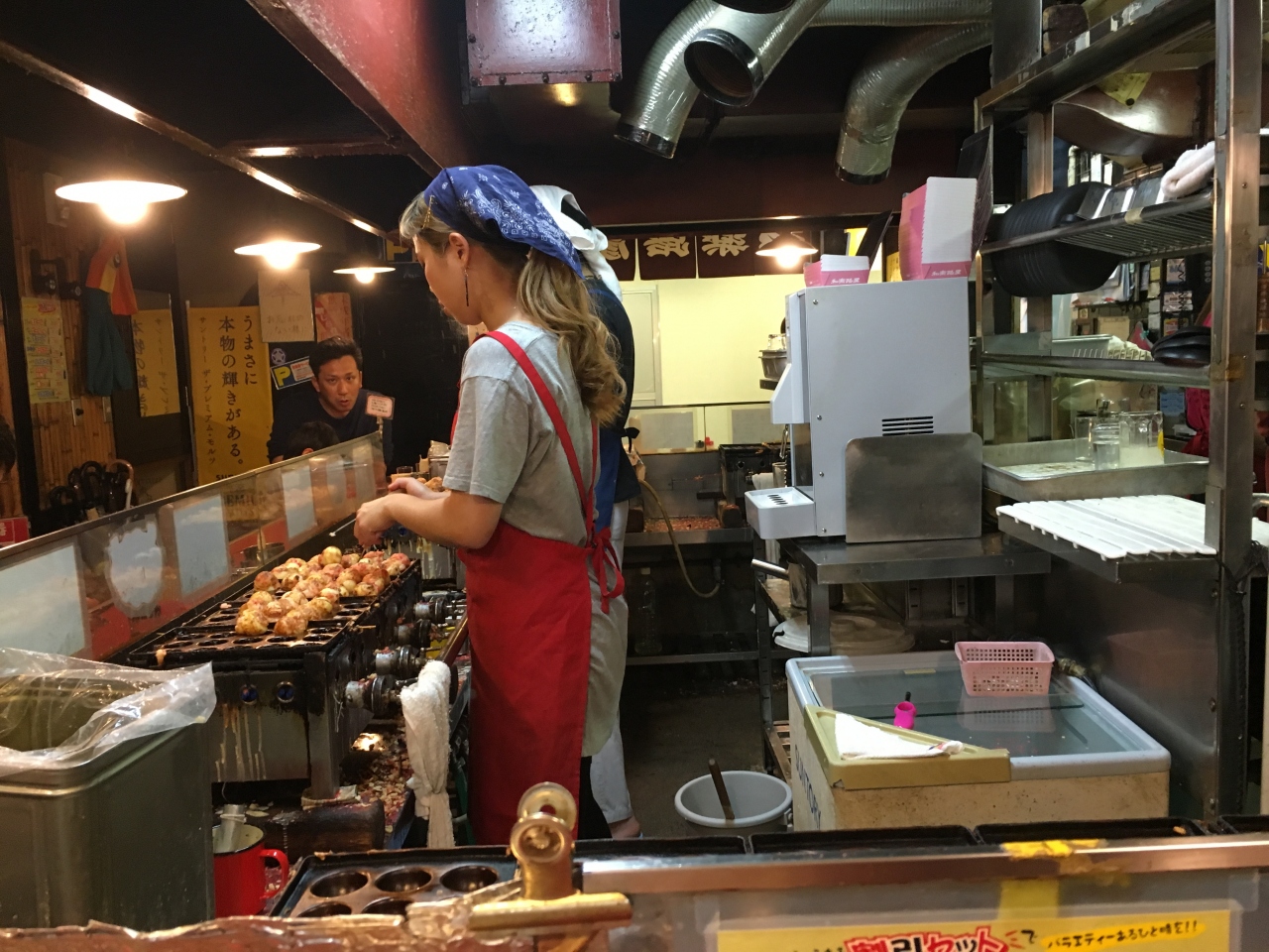 たこ焼きはテイクアウトも可能で、お店の外では出来上がりを待つお客さんが引きを切れません。