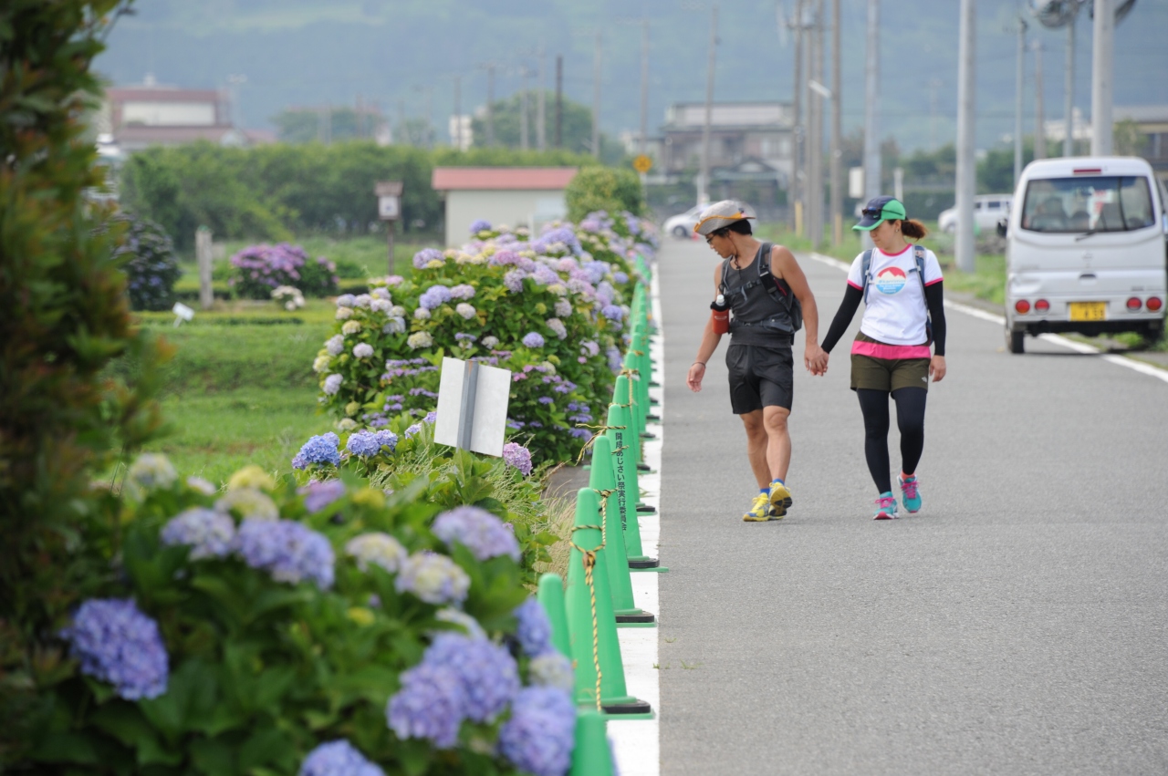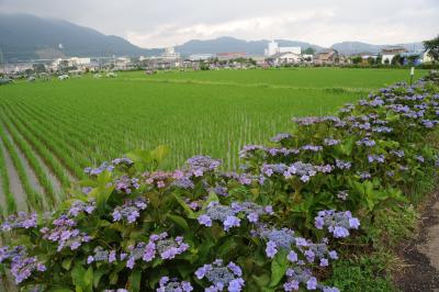 酒匂川流域の田園地帯のなかに、あぜみちや道路端に沿って咲くあじさいは広々とした大気感もあって、なかなか見事です。箱根の山々や富士山も良い背景になっています。