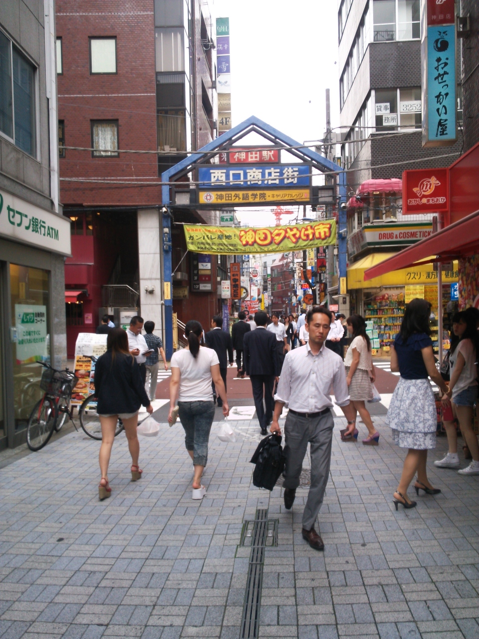 神田の西口商店街は飲食店主体で、平日のお昼は大勢のサラリーマンや神田外語学院の生徒さんでにぎわいます。