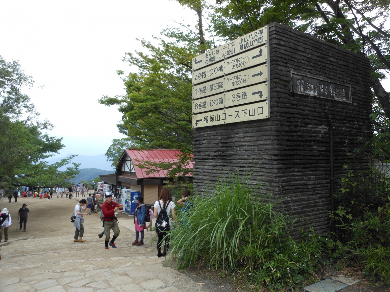 高尾山山頂から来る以外に、稲荷山コースから高尾山山頂への石段には行かずに左に巻いて来る。小仏城山方面から縦走してくるなど行き方は幾つかあります。