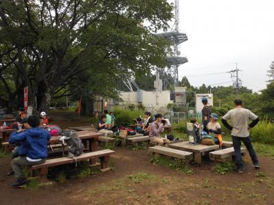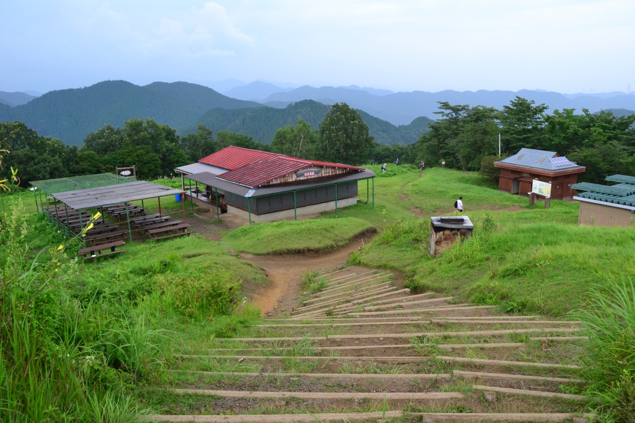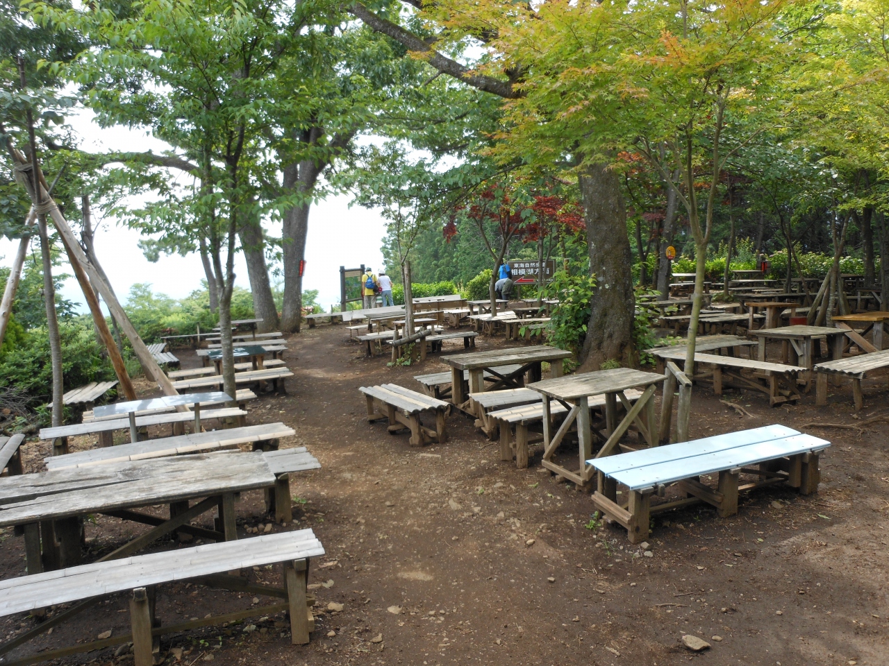 2軒の茶屋の周りには休憩用にベンチが並んでいます。小仏城山は展望に優れ、八王子側は東京都心部が遠く眺められます。