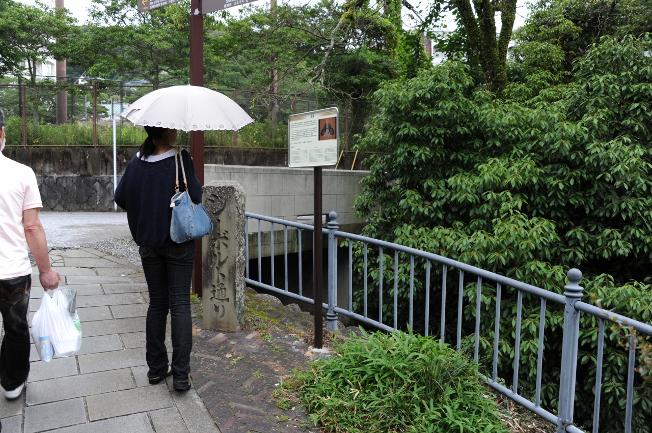 長崎さるくのパンフレットで出島からシーボルト宅跡へのウォーキングコースで、シーボルト宅跡に向かう手前にあります。