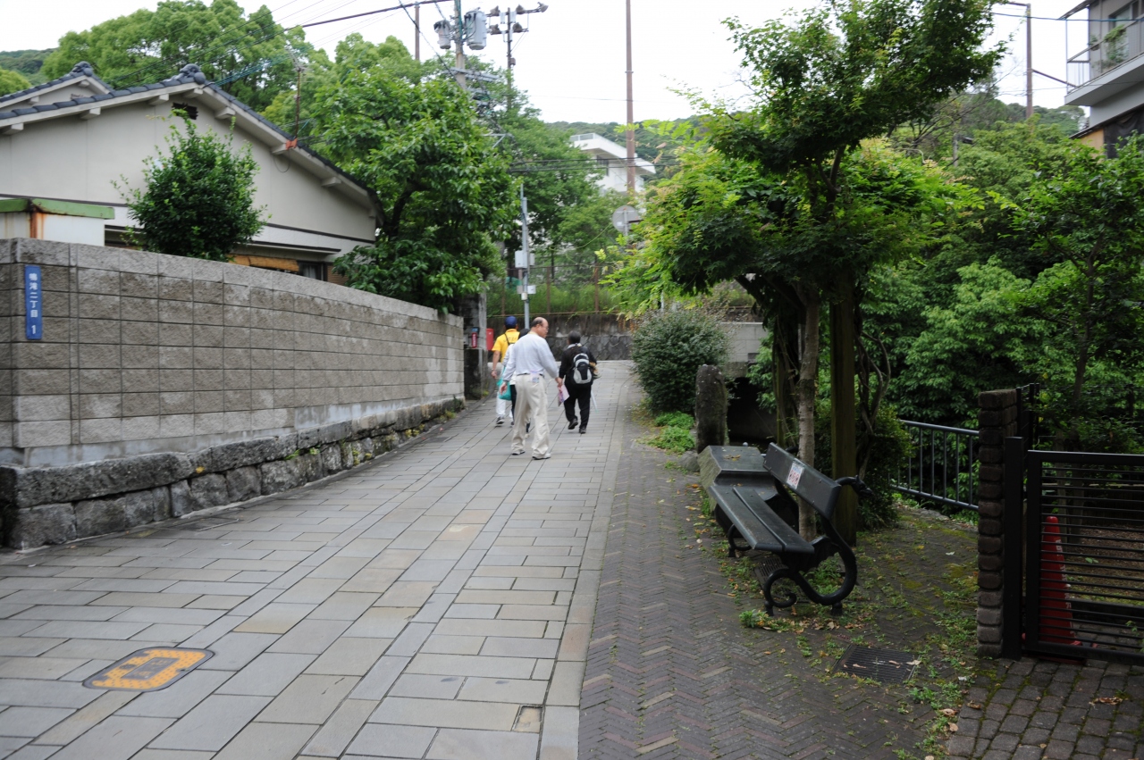 江戸時代には景勝地として知られ、長崎名勝図絵では崎陽十二景のひとつとされたそうで、長崎の有力者の別荘だったとされていますが、現在では一般の住宅地となっていて、その間をシーボルト宅跡に向かう観光客が行き交うといった感じです。