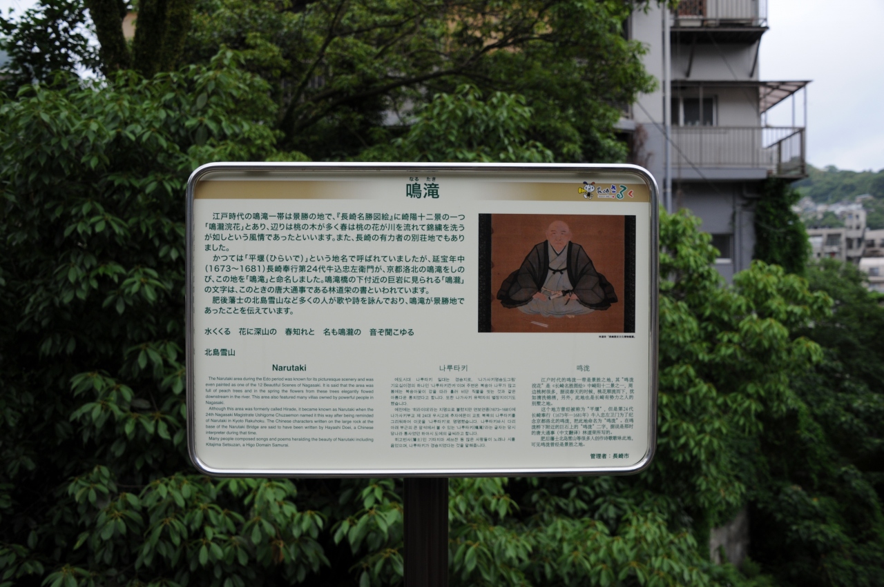鳴滝高校のグラウンドが近くにあって、眼鏡橋からシーボルト通りを歩いてきたとすると道がだんだん細くなって、周囲に山が迫ってきます。