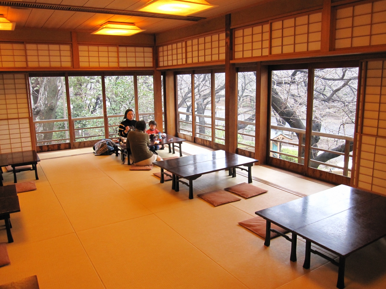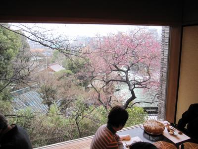 公園の道からの見た目以上に、内部は幾つかお部屋があっては大きいのですが、閑静な佇まいは歴史と風格を感じさせます。私が訪れた時には不忍池側のお部屋で、厳寒で例年になく開花が遅れた梅の花が綺麗に咲いていて、とても風流な展望が味わえました。