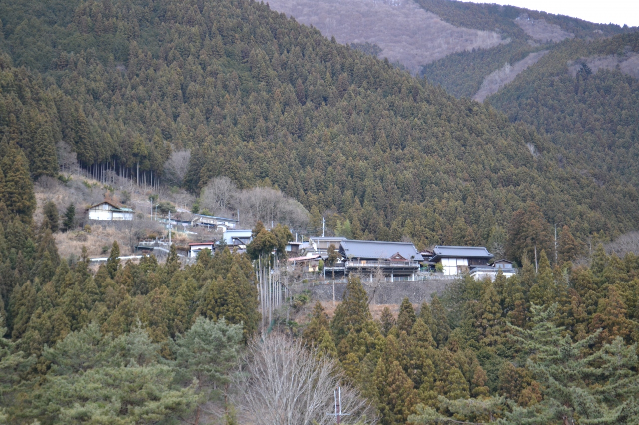 山の上に目をやると山の斜面の上の方に山上集落があるのが目を引きます。
