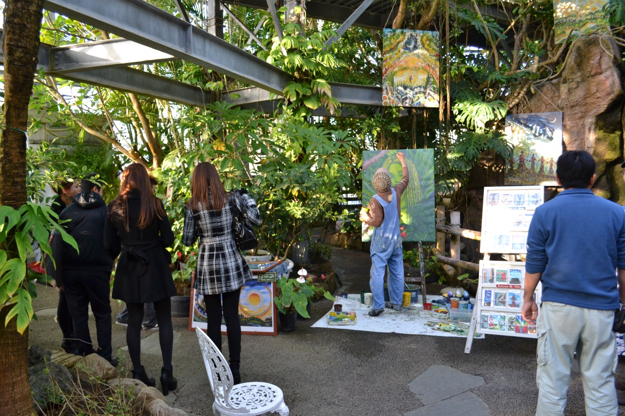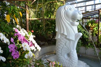 シンガポールをイメージしているようで、園内にはマーライオン像が幾つかありました。園内にあるフラワーパビリオンにあるカフェ・ハイビスカスは、フレッシュ・フルーツ・ジュースが名物です。果物からその場で絞っていました。
