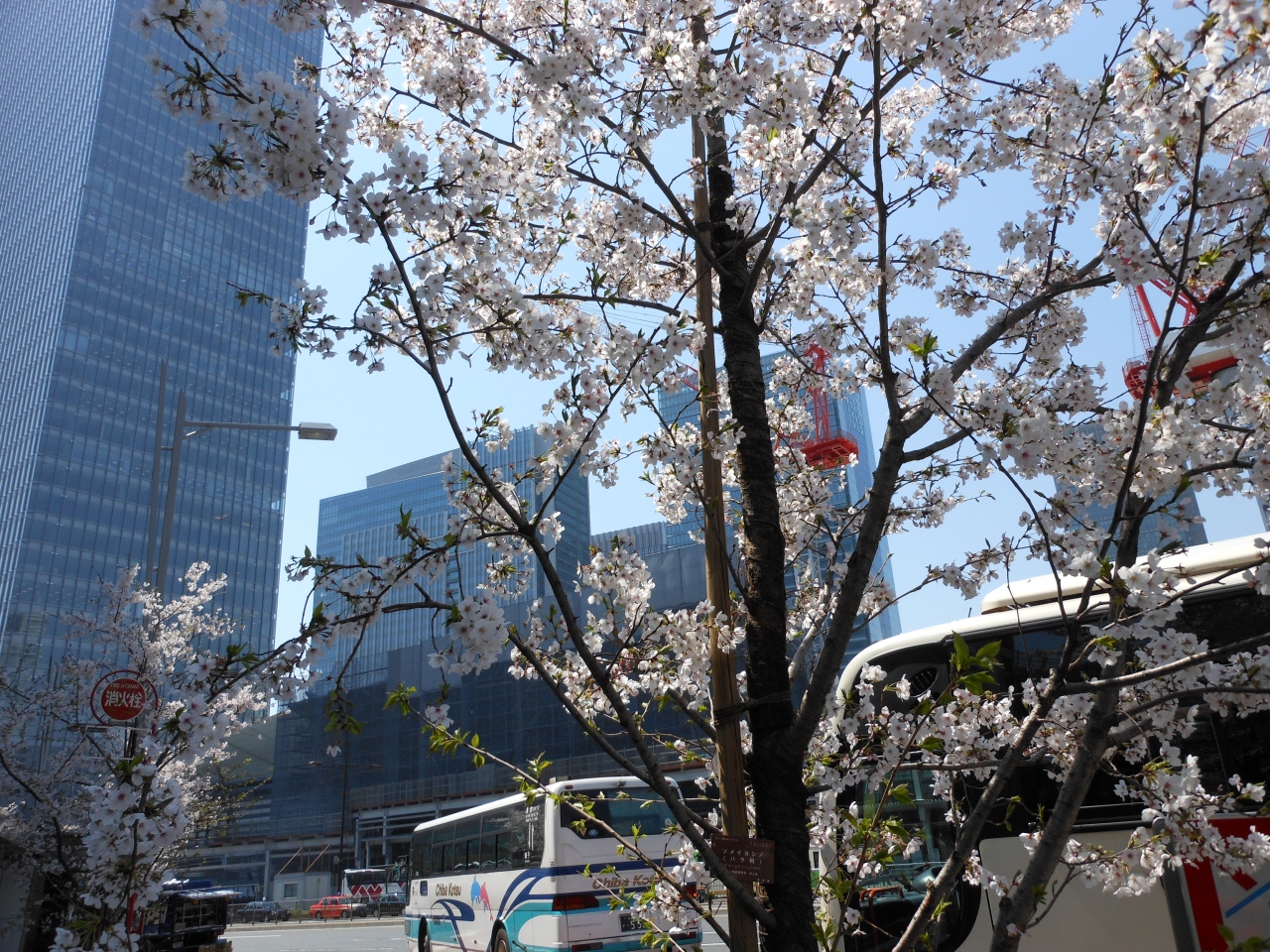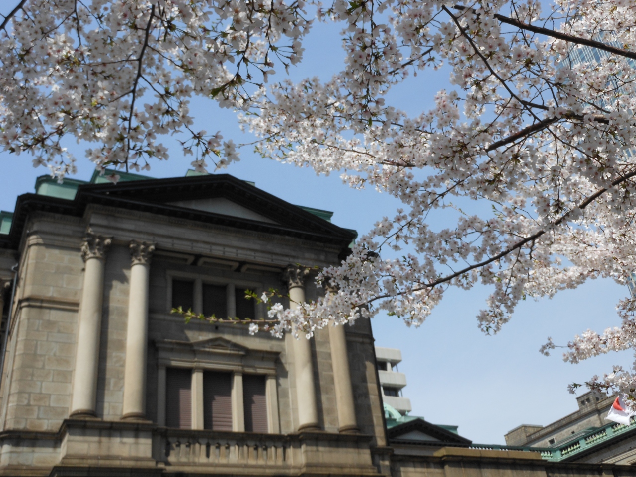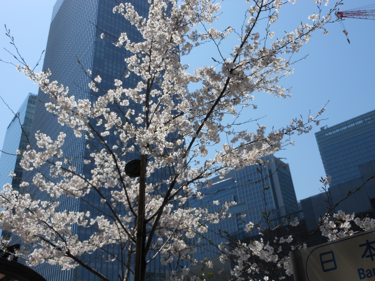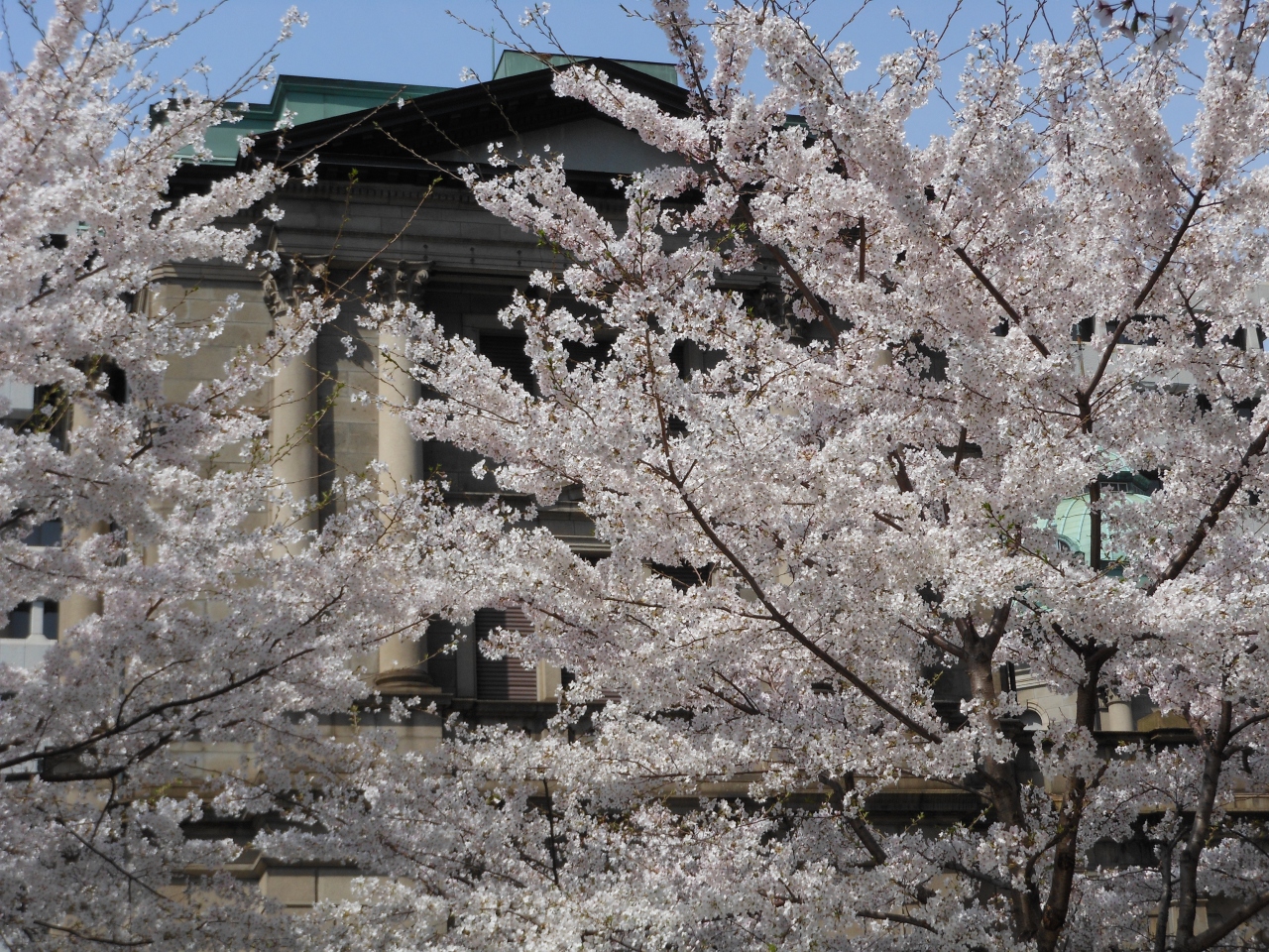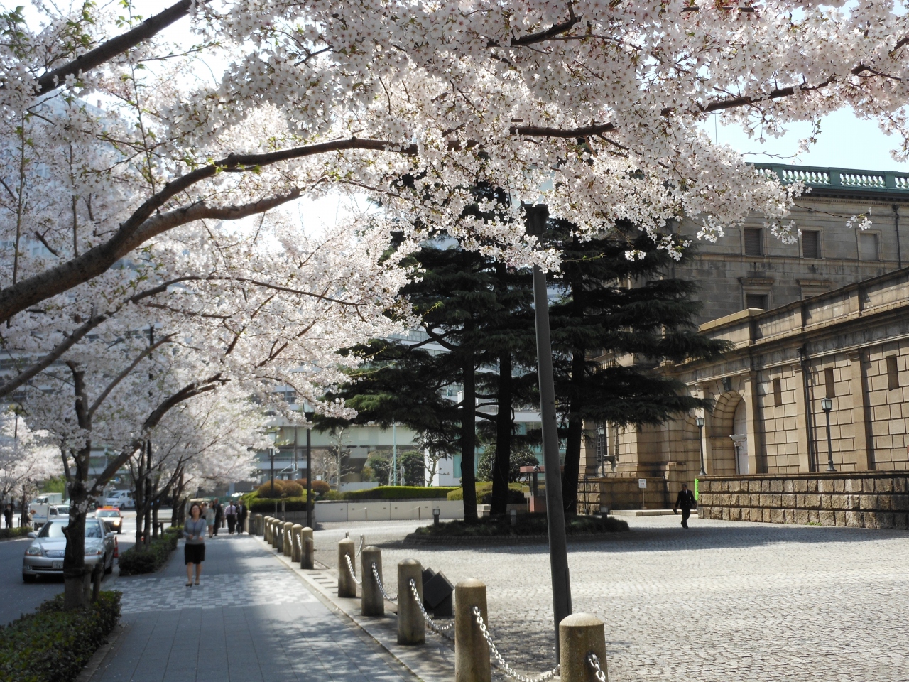 4/8、快晴の青空に誘われて、昼休みに日本銀行本店前まで桜見物にやってきました。日銀本店脇というと大型バスの駐車できるスペースがあるため、東京駅八重洲口から出発する高速バスの待機場所といったイメージが無くはないのですが、桜の時期は日本銀行本店前の江戸桜通りは美しい桜並木になります。近隣に勤めるビジネスマンや通行人が盛んにカメラを向けていました。