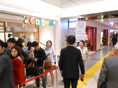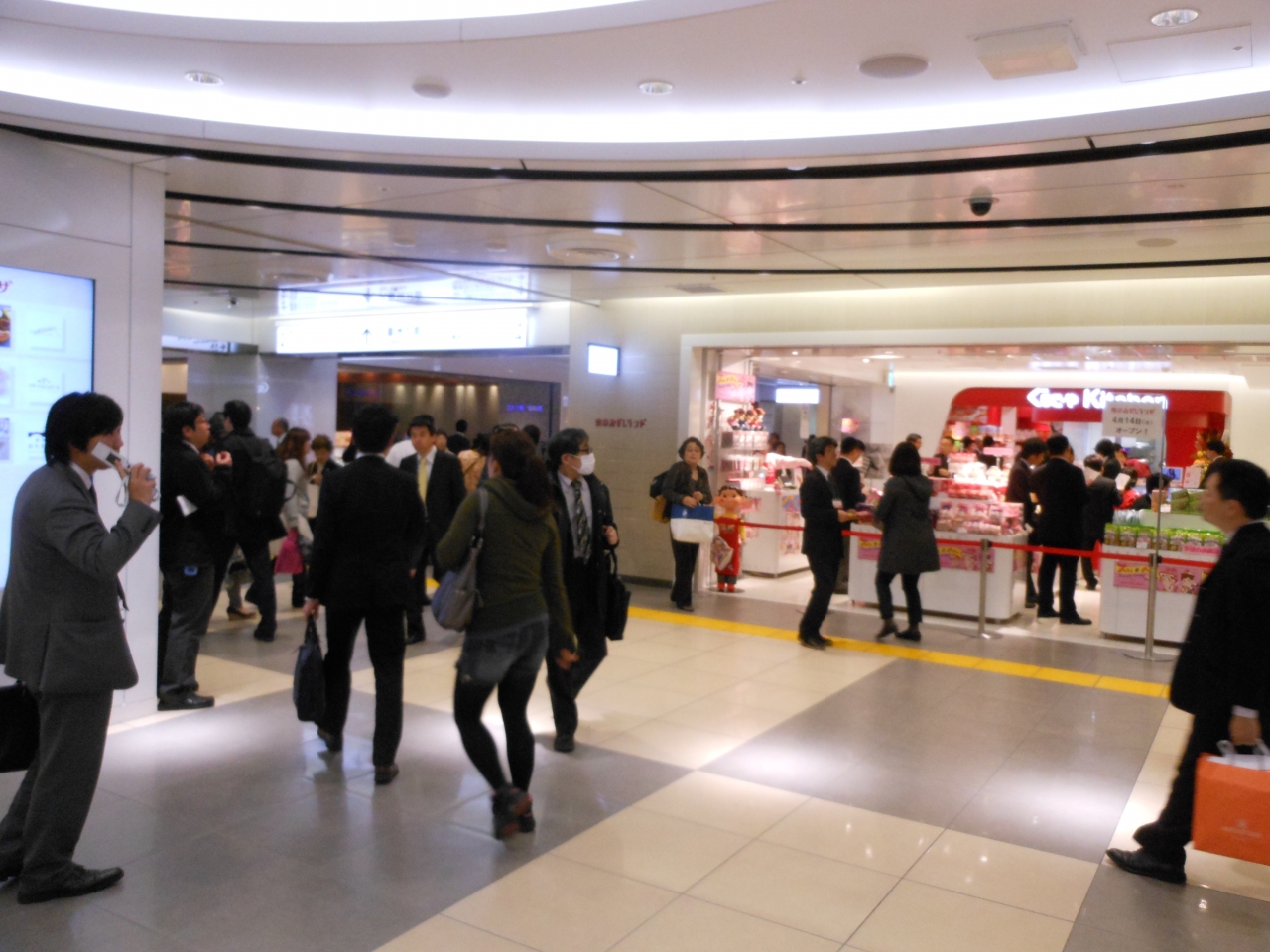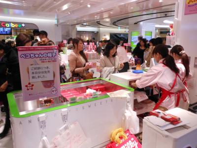 東京駅一番街では4/14(土)から製菓メーカーの直営店で「東京おかしランド」が新規オープンしました。連日大賑わいで、入店まで30分以上待つ必要があるようです。