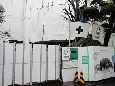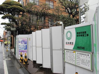 - 工事中のため中に立ち入ることはできません。仮囲いの外から眺めるだけです。