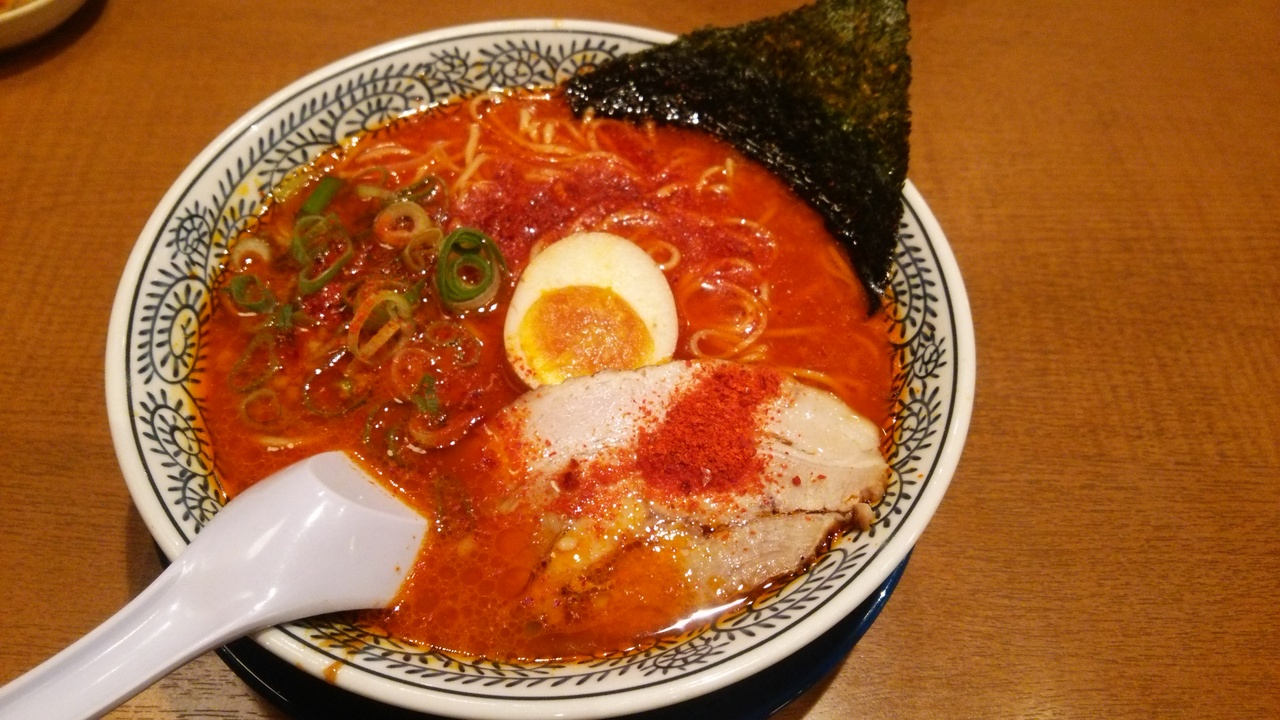 おすすめは「しょーゆとんこつラーメン(赤)」です。