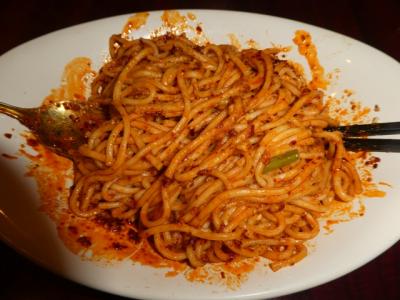 テレビで見てるだけでも辛そうだったので、辛さハーフを注文。