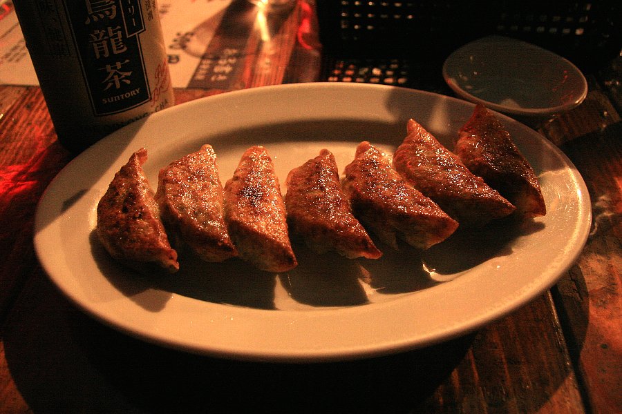 ラーメンもあるようなのですが、やっぱり「高知名物」とやらの屋台餃子を注文。1皿7個で500円。さらにウーロン茶(200円)も注文。
