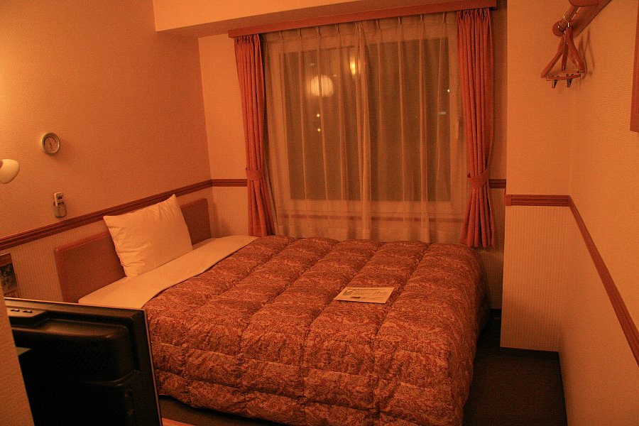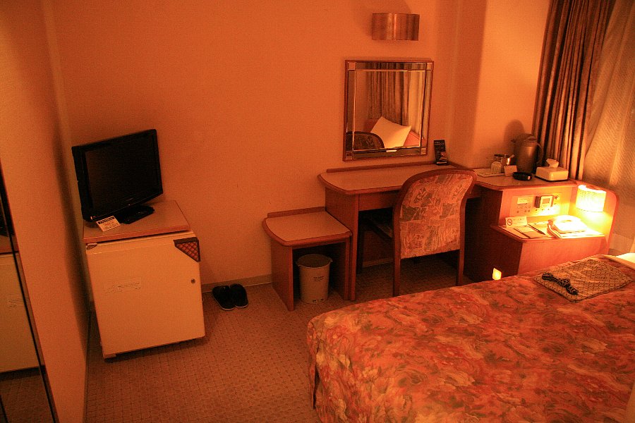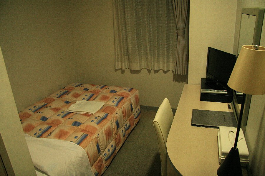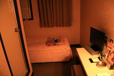 部屋は驚くほど狭い。都心のビジネスホテルでもなかなか無いぐらい狭い。ベッドも狭いし、とにかく窮屈。
