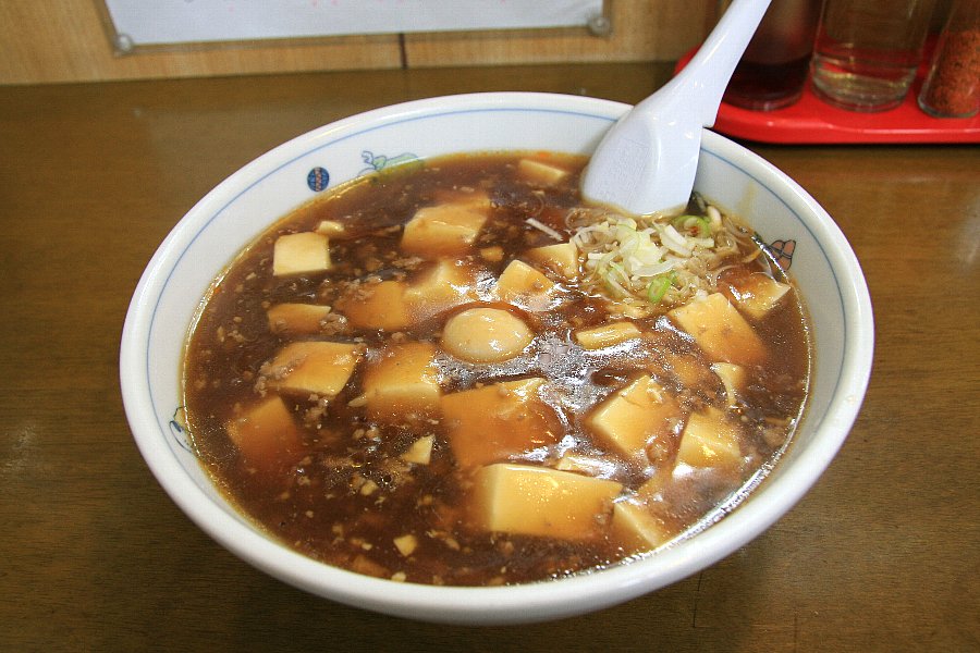 よく麻婆豆腐が乗ったラーメンと豆腐ラーメンを混同する人がいるのですが、豆腐ラーメンに乗っているのは醤油味のあんかけ。