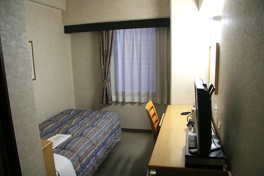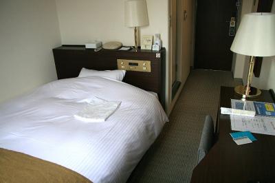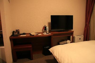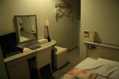 部屋の大きさは標準的なビジネスホテルといったところ。ベッドはセミダブルで広いので、寝心地はとても良い。清掃もしっかりしているので快適。