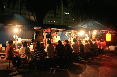 高知市の繁華街のほど近く、江ノ口川沿いを歩いていると人でごったがえしている屋台があります。それが「高知名物 屋台餃子」を名乗る「屋台安兵衛」。