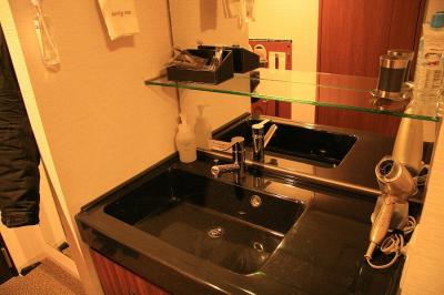 部屋に風呂やシャワーはなく、洗面台とトイレのみ。洗面台も後から付けた感じがする。ドアや壁は薄っぺらで安普請。とにかく何もかもが安っぽい。