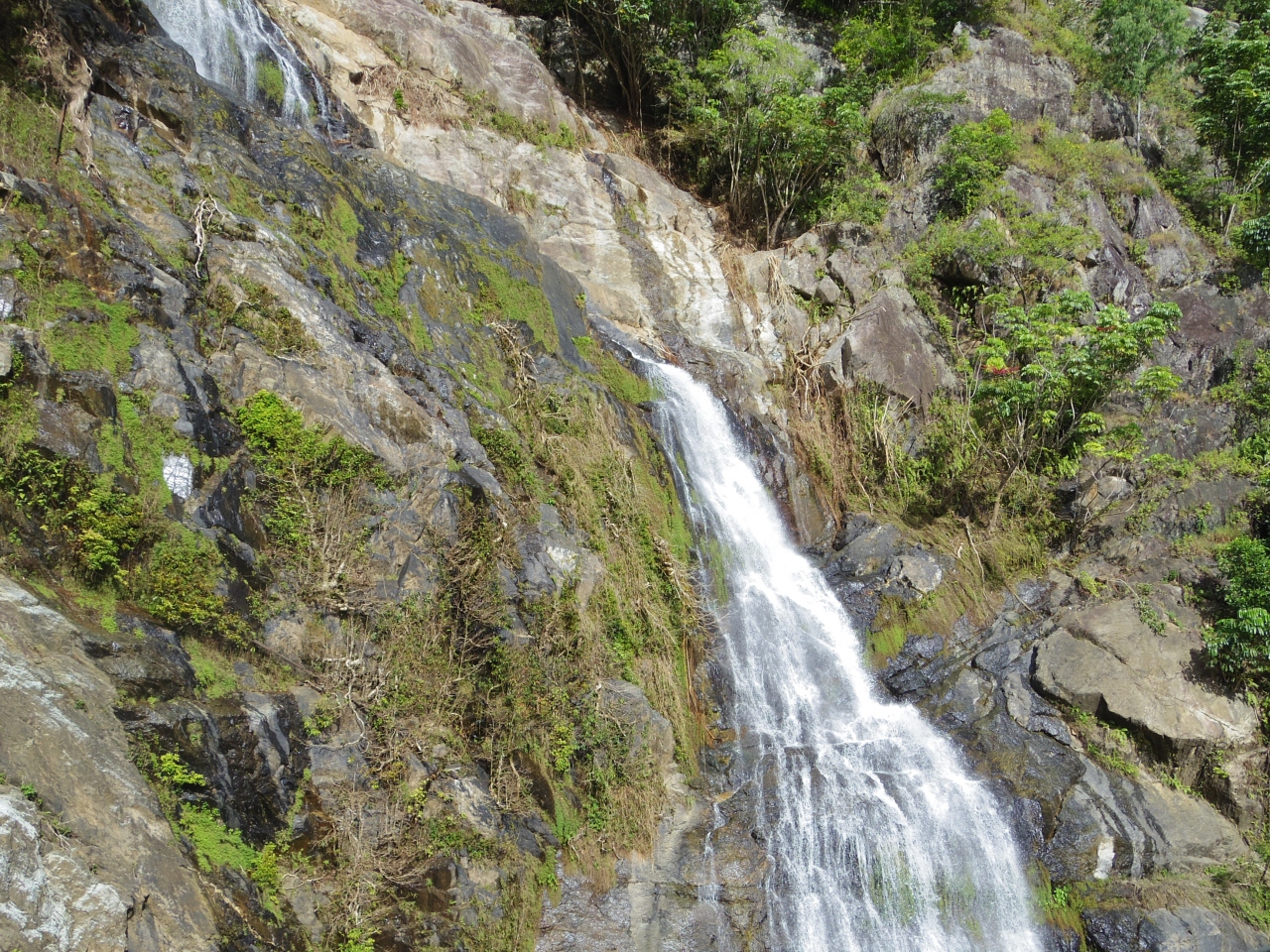 どんどん標高をあげて、海・山・眼下の畑や家の景色を楽しんでいると、スピードが落ち、気づくと一番絵になる鉄橋の上での右カーブでした!左側すぐ横には滝がありました。