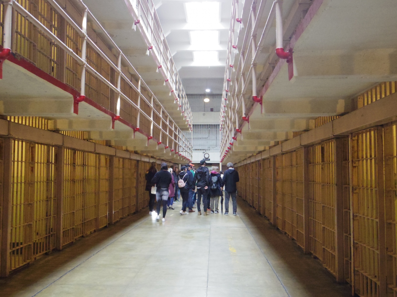 下船後、英語の説明がありますが聞かなくてもいいので、どんどん登って行くと監獄の入り口があります。シャワー室(映画ザ・ロックのシャワー室と全然違う)の奥でオーディオガイドを日本語に設定して渡してくれます。オーディオガイドの指示通りに回れば全部見れます。時間に余裕があれば、オーディオガイドの案内通りに灯台に出てから少し外を散歩するといいです。ゆっくり見ても10時50分のフェリーに間に合いました。