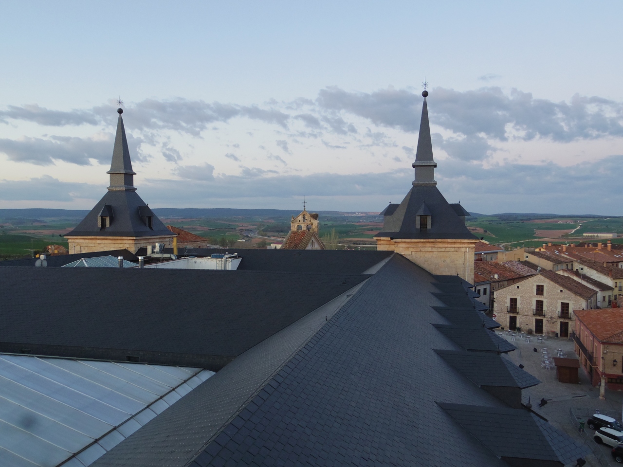 トレドのアルカサルのように正方形で、それぞれの角に塔がある建物です。パラドールの公式サイトよりスタンダードでもPLUSとある部屋を選ぶと、36段階段を登りますと注意書がでてます。