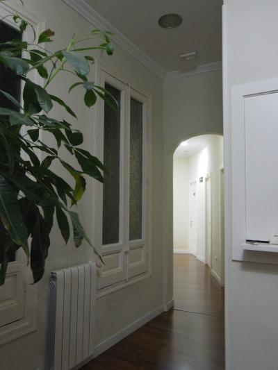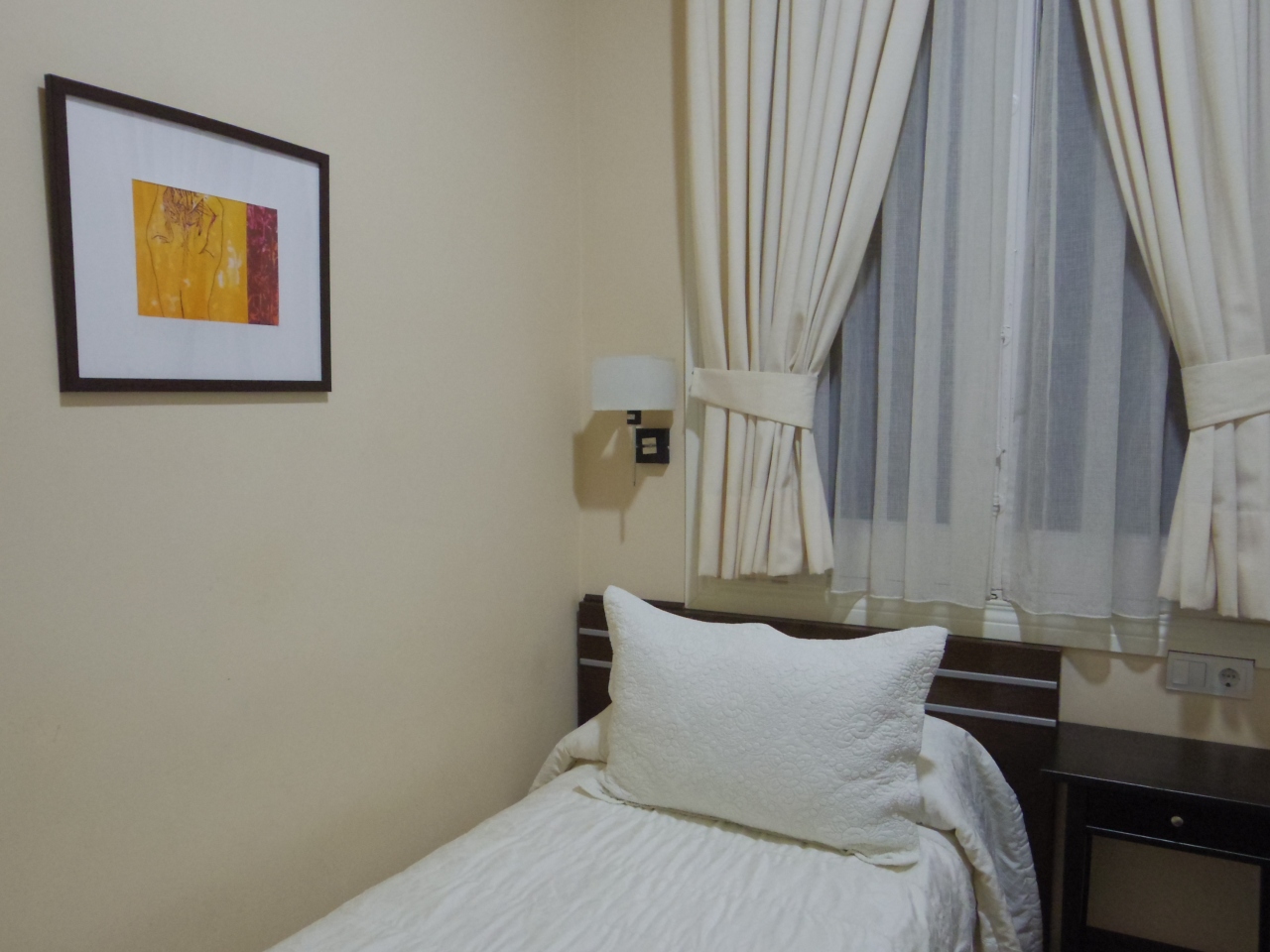 プエルタ・デル・ソル至近の大きな白い建物。マヨール通りに面した小さな扉の右側のインターフォンに小さくHOSTAL MAYORの表示が出ているので、そのボタンを押して呼び出し、鍵を遠隔で開けてもらいエレベーターで3階へ。