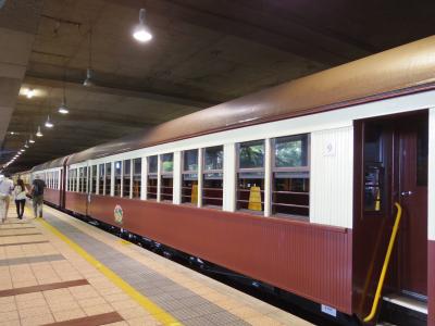 絶対乗りたかったのでJTBオーストラリアのサイトから、8時半のチケットを購入して行きました。席は指定できなかったので7時半にケアンズ駅の窓口に行って、8時に窓口の開くのを待ち、窓側ゲットできました! (車両は、キュランダ方向左側が廊下、右側に4人掛けの席が並んでいます)