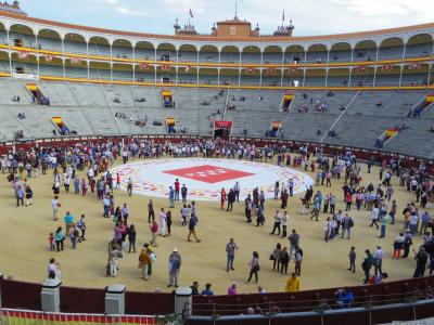 この日は開始前に闘牛場のアリーナに入ることもできます。着飾った人を乗せた馬車もグルグル回っています。