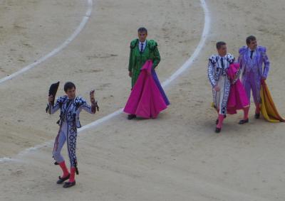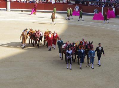 6時半に開始、3人の闘牛士が2度づつ闘牛を行うので9時頃終了です。