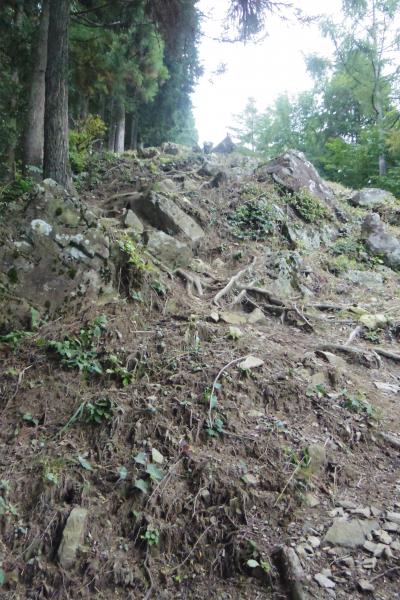 登山道に入り急坂を登り、やっと尾根に出たと思ったら、また急坂。岩がゴロゴロのところが少しだけあって、また急坂と結構大変でした。