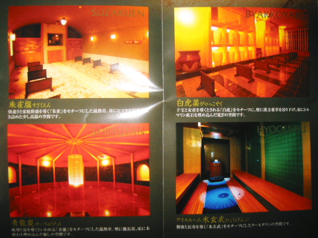 4つのタイプの違った部屋があり、休憩室もあるのでのんびり出来てよかったのですが、ただいかんせ関西のおばちゃんは・・・しゃべるしゃべるドタドタ入ってきて、シーツを引くようにタオルを広げるし、これには参りましたが、でもおばちゃんたち一行が入ってきたら別の部屋に移動を繰り返したので、良いタイミングで楽しめました。本当に汗が出る出るで気分爽快!!