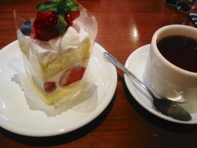 Jr西宮駅から歩いてすぐなので、ホームページから場所を確認していきましたが、すぐに目に付きました。お店前にはたくさんのフルーツが美味しいそうに並んでいて、期待満々お店に入っていきましたがショーケースに並ぶフルーツケーキに・・・フルーツかまさに山盛りのケーキに圧巻!!どれを食べるか考えるだけで幸せになりそうなケーキケーキ。でもお昼を食べたばかりなので、イチゴのショートケーキ480円と紅茶420円にしてフルーツたっぷりは次回に。でもフルーツはたっぷり入っていて美味しいかった〜たたミルクティーをお願いしたのですが、紅茶についてきたミルクがほんのり温かかったのには、残念でした。それ以外は大満足・・・。