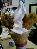日生、五味の市でカキフライソフト 250円、味はご自身でお試しあれ~