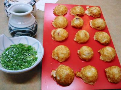 明石では明石焼きとは言わず、玉子焼き。お店が多くてどこの店に行くか迷うのですが、女一人で入りやすい店というと明石駅前のあけぼの商店街・・・?商店街というより路地という感じの入り口近くにある玉子焼き専門店の松竹・とてもきれいな店で清潔感もあるので、明石のお気に入りのお店です。営業時間は午前11時から午後の8時、水曜日が定休日で祝日の場合は翌日TEL078−912−0091・明石大明石町1−5−9・持ち帰り専用TEL0120-59-1504です。550円とランク上の650円がありますが、私はもっぱら550円です。お店によって味も違いますが、つけるだしの具も違うようで、ここは三つ葉ですが、しょうがとねぎという店もあります。女性向きのお店です。