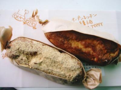明石駅構内のステーションプラザ明石の東館にある、洋菓子のデリカで売られていたのが、きなこシュー&とうふシュー各110円他に、おみくじシューと豆腐のプリン抹茶プリンもあったのです、前回この店の前をを通りかかった気になっていたきなこシューととうふシューを各1個づつ買い求めました。さてさて味は・・・その前にこのお店がけしておしゃれとは言いがたい本当に普通というか・・・そしてけして愛想のいい(失礼な発言を・・)おばさんでもなく美味しいのか内心・・・不安を抱えながらも・・。たこフェリーに乗船して甲板でティータイムをまずはきなこシューを・・う・・以外にしっかりした生地とあっさりしたクリーム・・美味しい!!きなこは・・特に味に関係のない気もしつつ美味しい、ぺろりと食べてしまい。とうふシューをこれも美味しいというか、きなこが振りかけてないだけで?早い話同じ?今度はゆっくりカスタードクリームをみて黒い粒が・・これはバニラヴィーンズ。この価格でこれを使うなんて、本当にあっさりしていて後口もよくて甘いものが苦手な私には美味しかったのですが、これにフルーツを挟んで食べても美味しいかも何て思いながら、売られていたのは洋菓子のデリカだったのですが、シュークリームを入れてくれた箱の包み紙はTOM&TOMYなっていて、子供が描いたようなシェフ帽を被った男の子とウエイトレスの女の子絵と、電話番号らしきものがTEL912−3667、明石の市外局番書かれていないので、この前に明石の市外局番があると思うのですが、お店は別にあるのか又次回行ったら聞いてみようと思っていますが、甘いものが苦手な人にはいい味かも、どちらかというと、男性好みの味のような気もします。でも味は本当にいいですよ。明石で見つけた意外な美味しさ・・・。