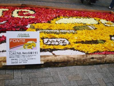 インフィオラータこうべ2006、開催場所元町6丁目商店街。チューリップの花びらで作った花絵は、本当に見ているだけでなく、やさしい花の香りがやさしく心を和ませてくれて偶然に開催中に元町に行くことが出来て、心から楽しめたのですが、機会があったらまた見に行きたいです。商店街の通り中央に咲いた花の絵は本当に素敵でした。